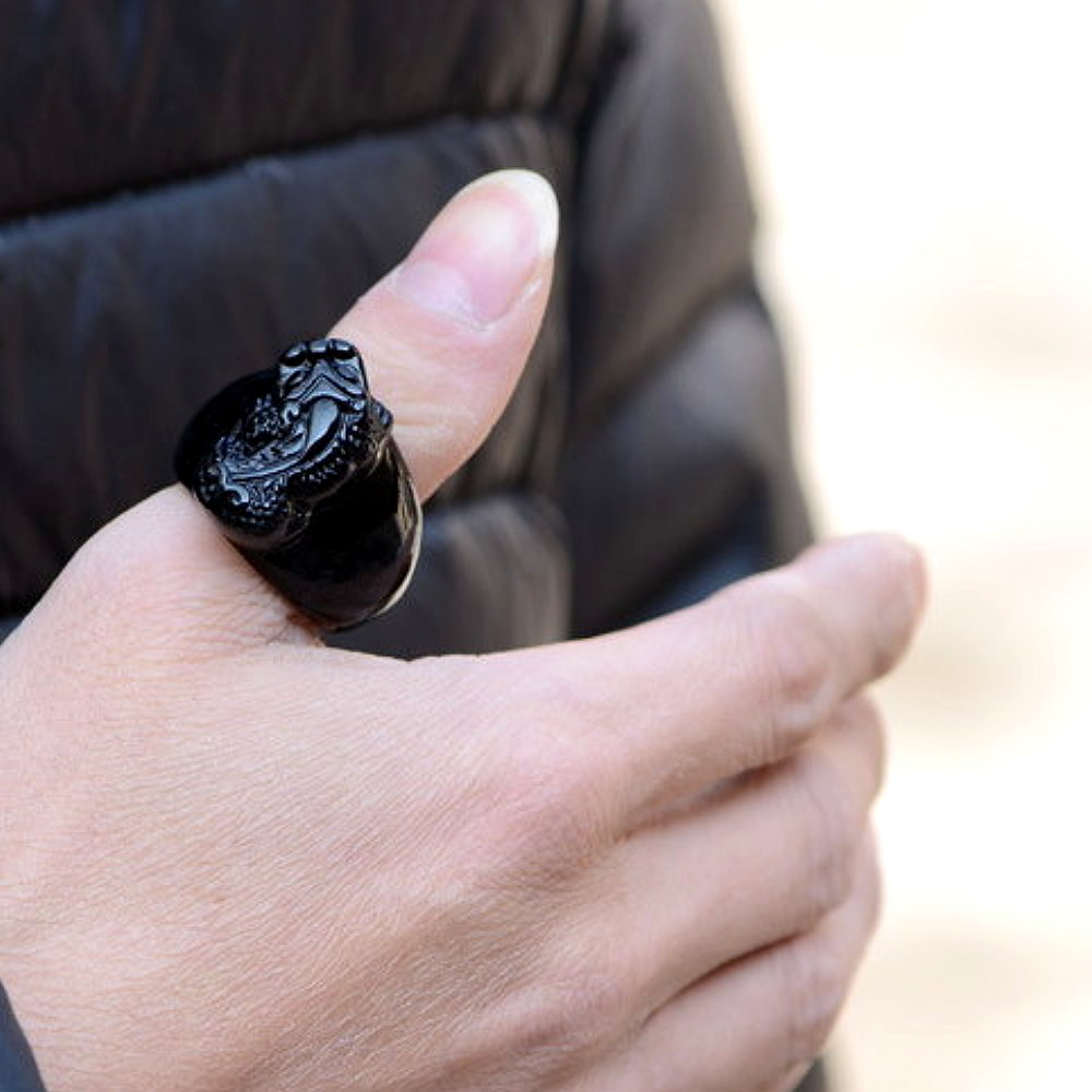 Stunning Natural Black Obsidian Thumb Finger Fortune Ring RARE UNIQUE