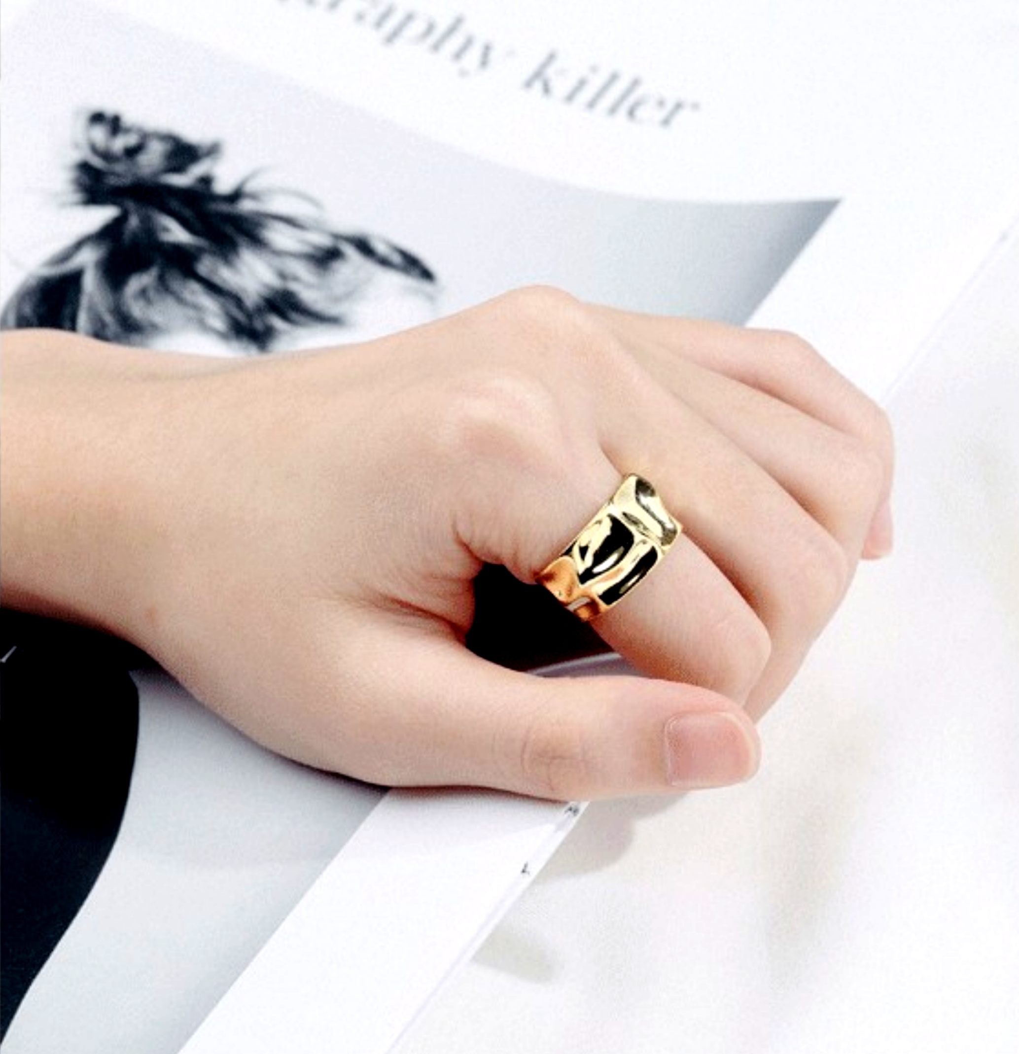Stunning Irregular Float Shine Silver Gold Ring Unique Rare Amazing