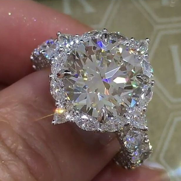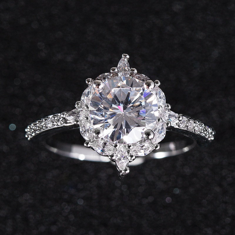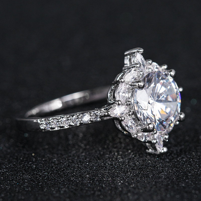 Glittery Disc Iced-cut Zircon Diamond Sterling Silver Ring