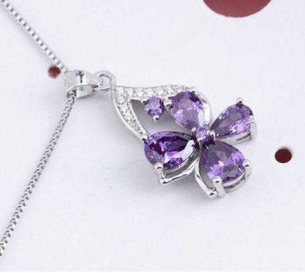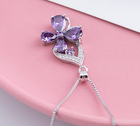 Simplicity Amethyst Clover Pendant S925 Sterling Silver Necklace~WOW! Minimalist!