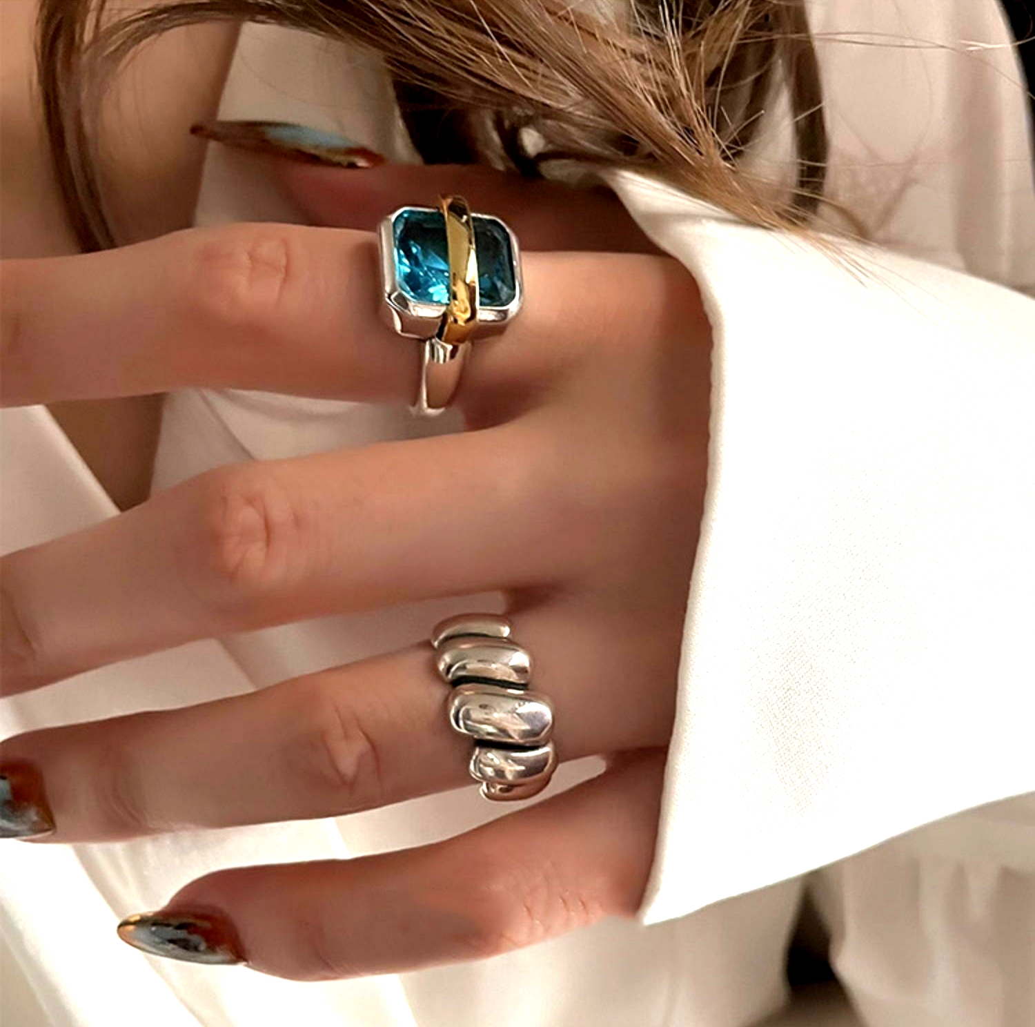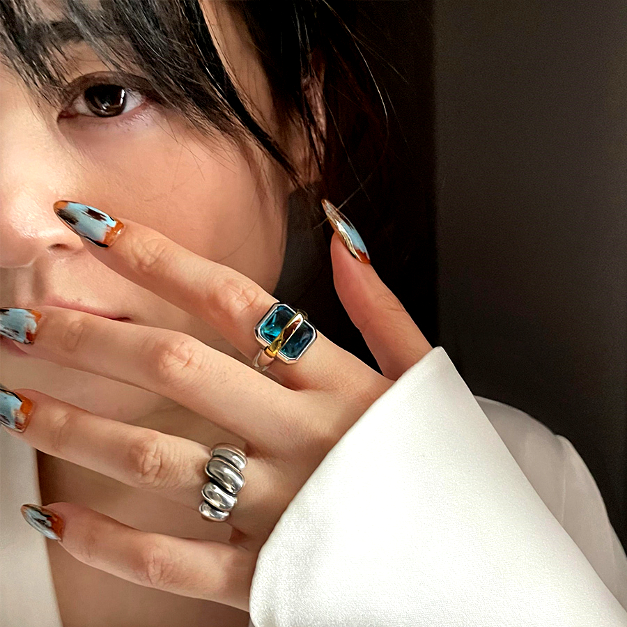 Stunning Gorgeous Geometry Square CZ Rhinestone Sapphire 925 Silver Ring Party Dance Great Event Rare Ootdstyle Amazing