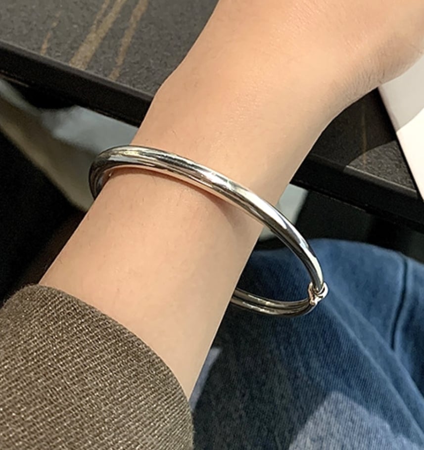 Stunning Highly Polished 925 Silver Bangle Bracelet 90s Y2K Party Dancing Occasion Streetwear Amazing