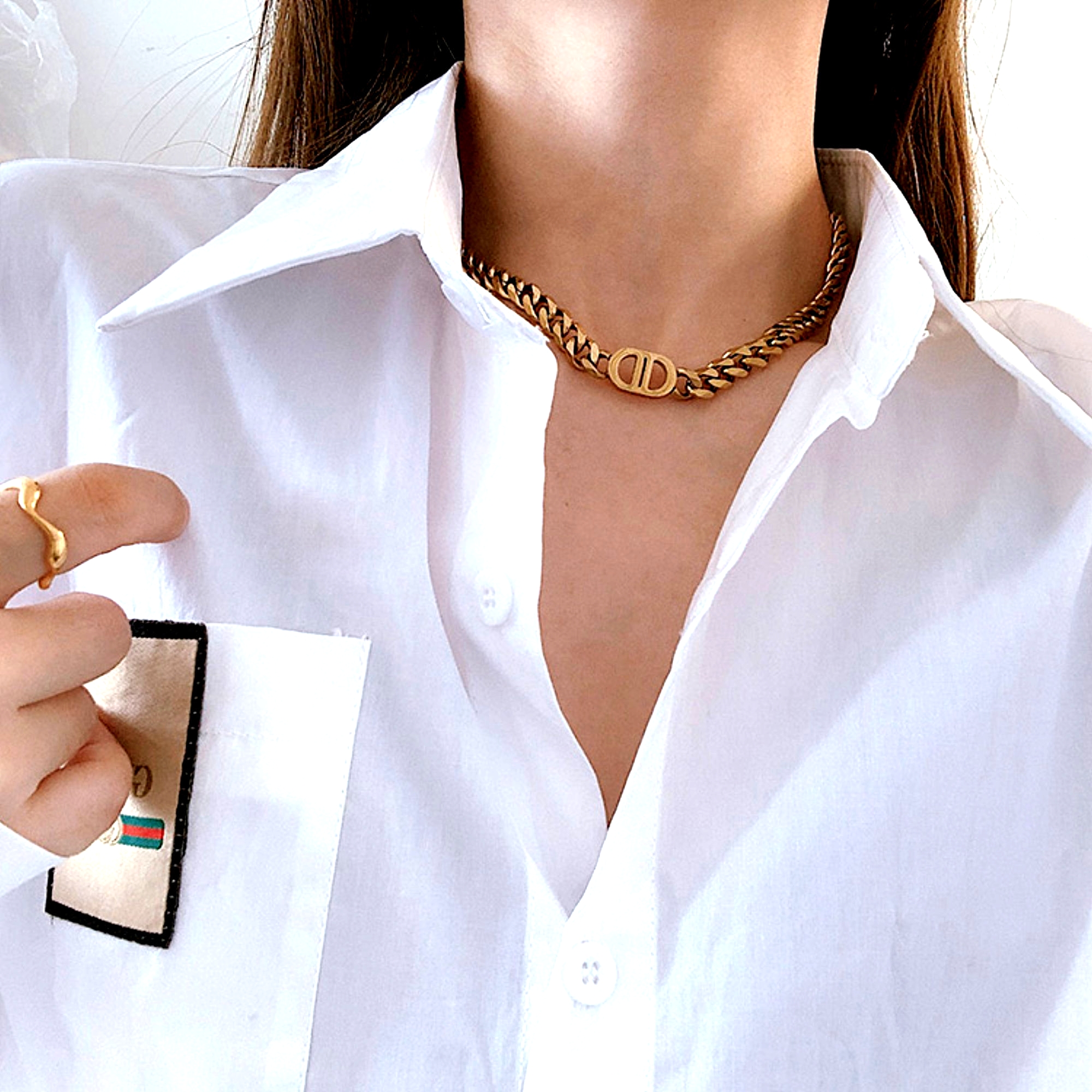 Vintage Punk Initials Double " D " Stainless Steel Necklace Unique Rave Women Men Amazing
