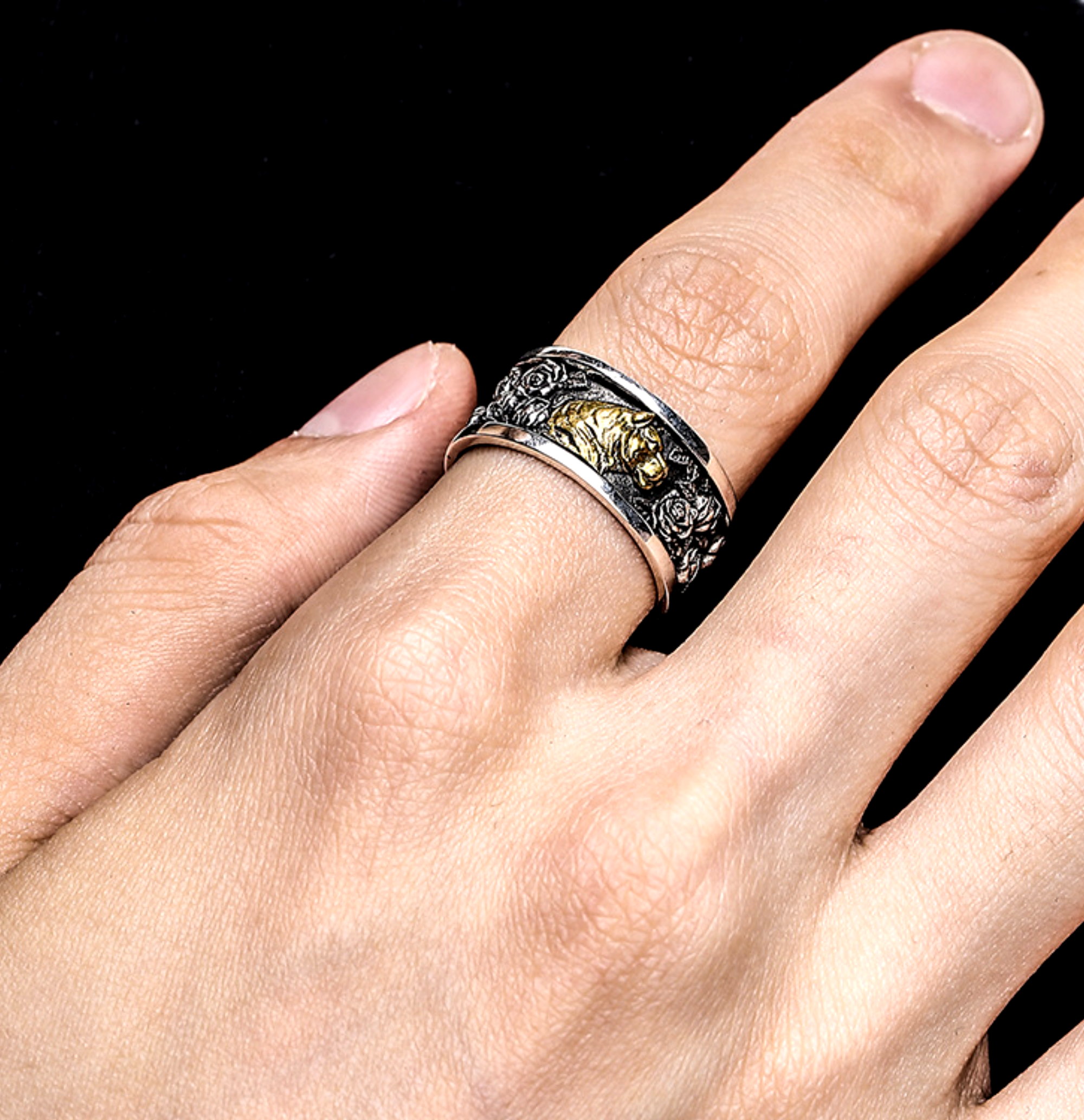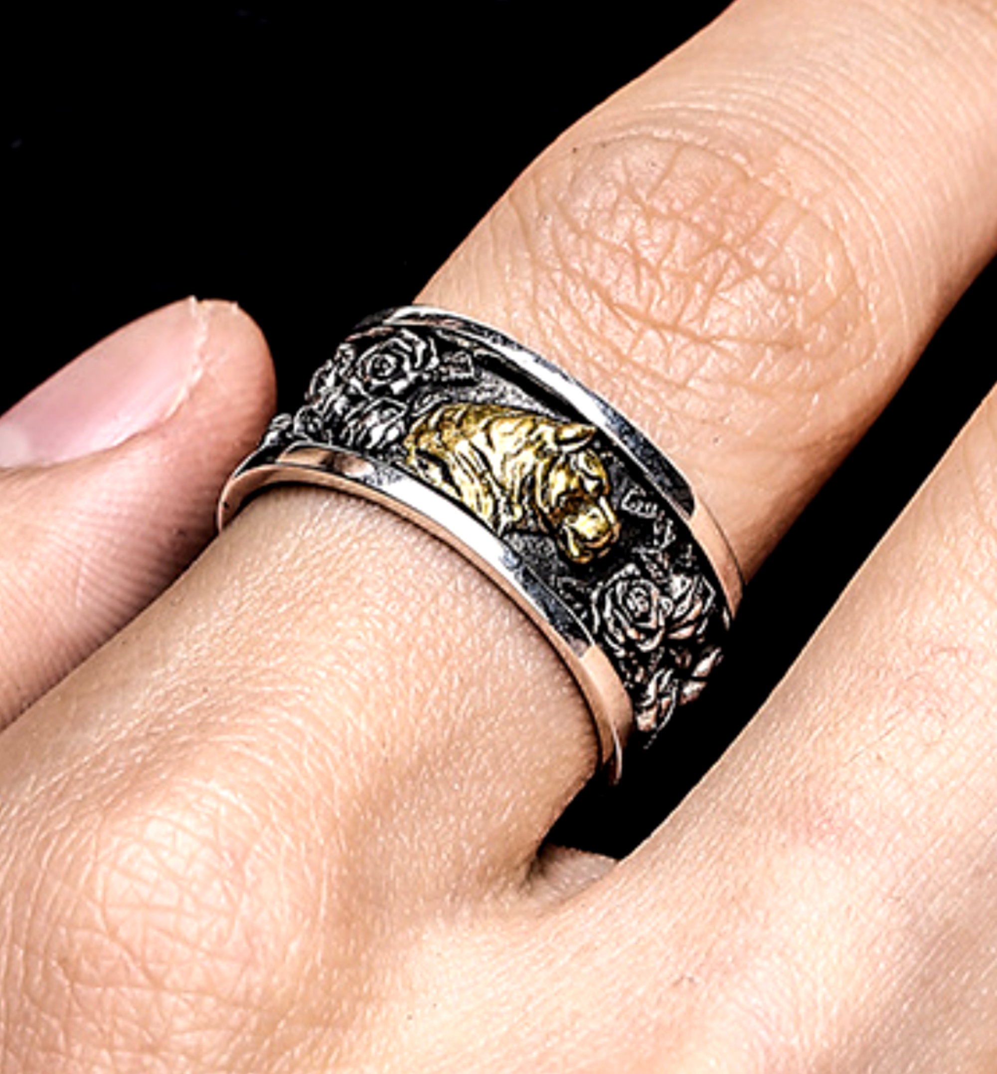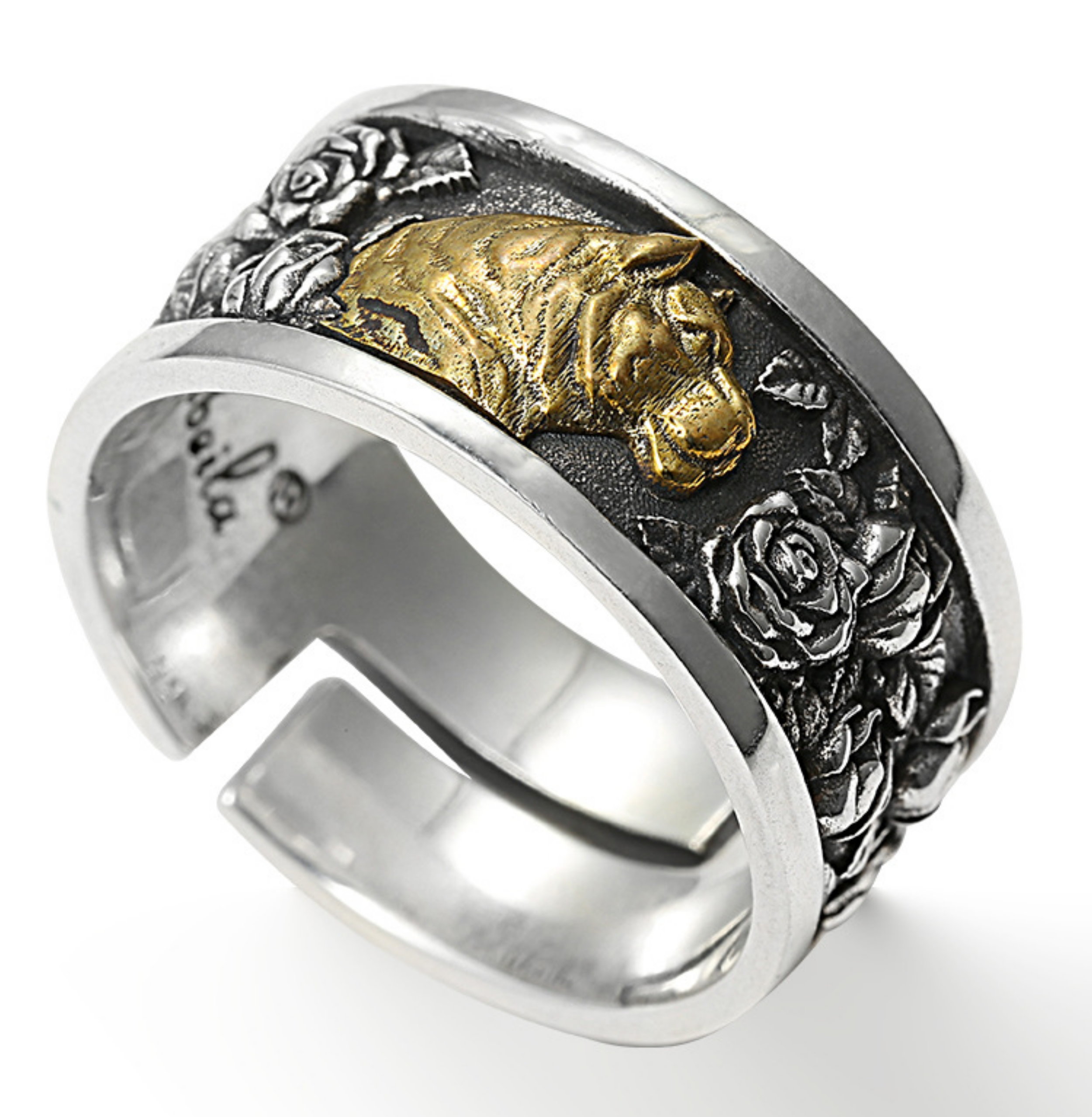 Vintage Unisex Punk Engraved Tiger Rosa Gothic Jewelry 925 Silver Ring 80s 90s Y2K Streetwear Party Dance Occasion Ootdstyle Amazing