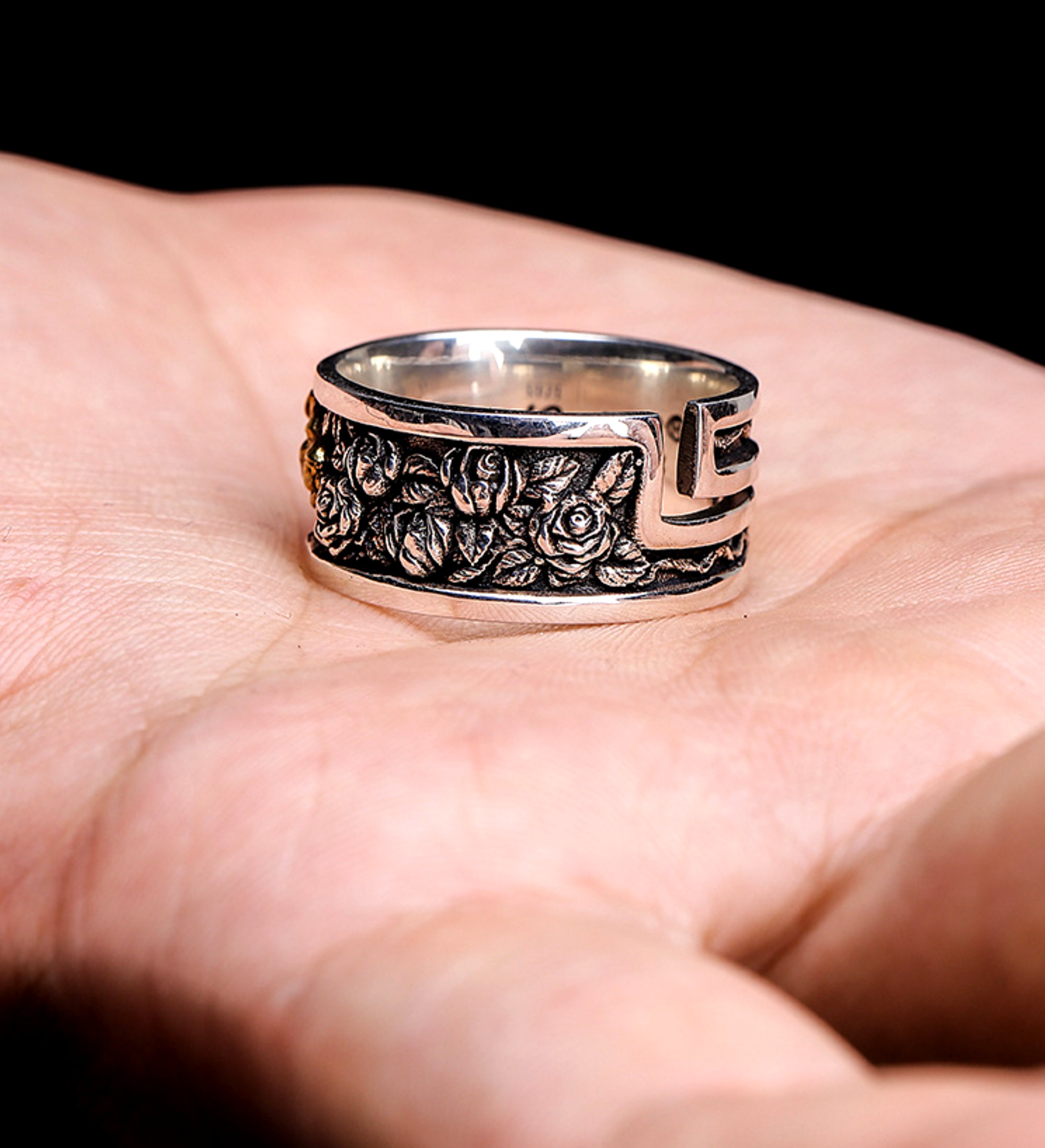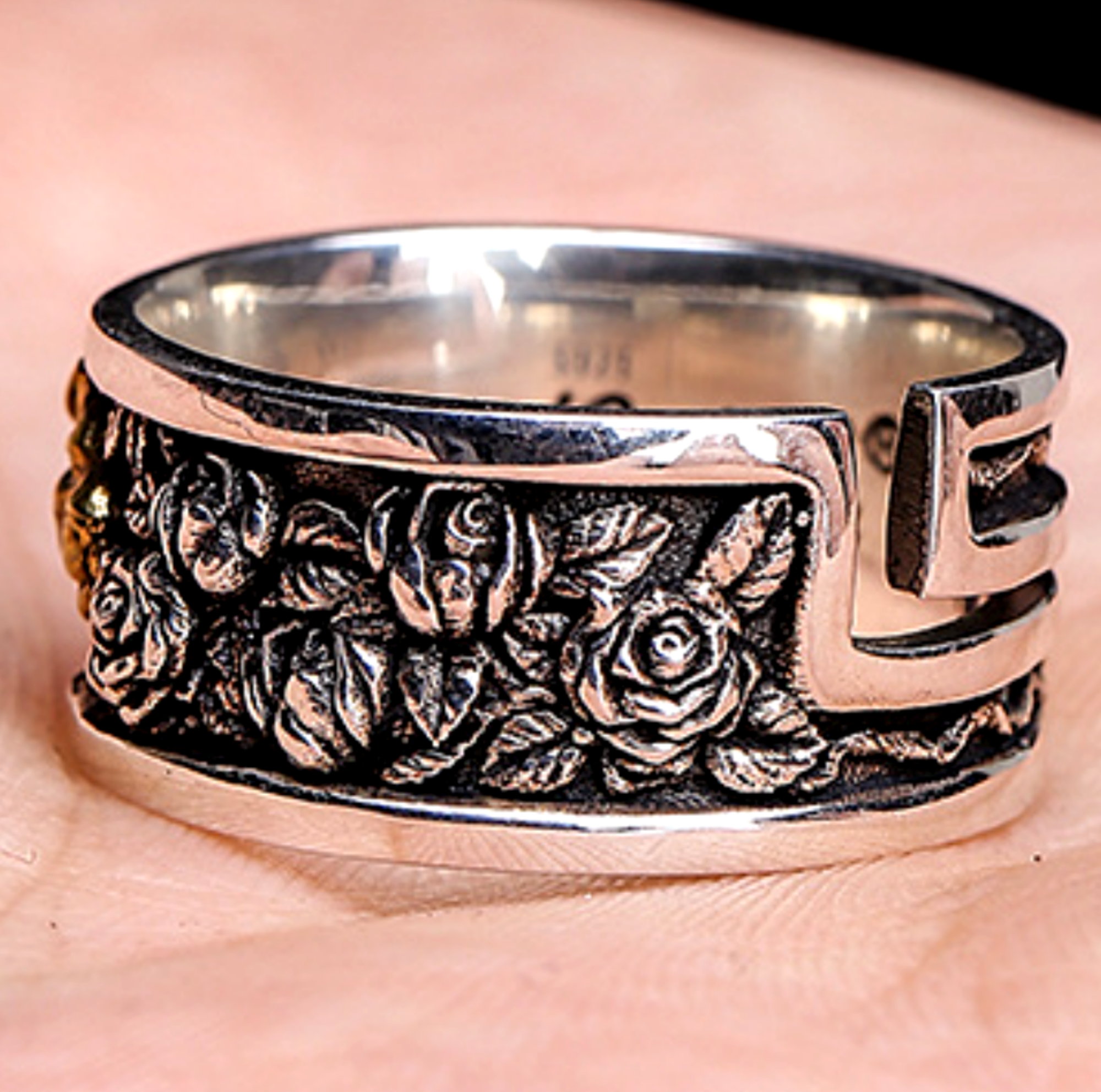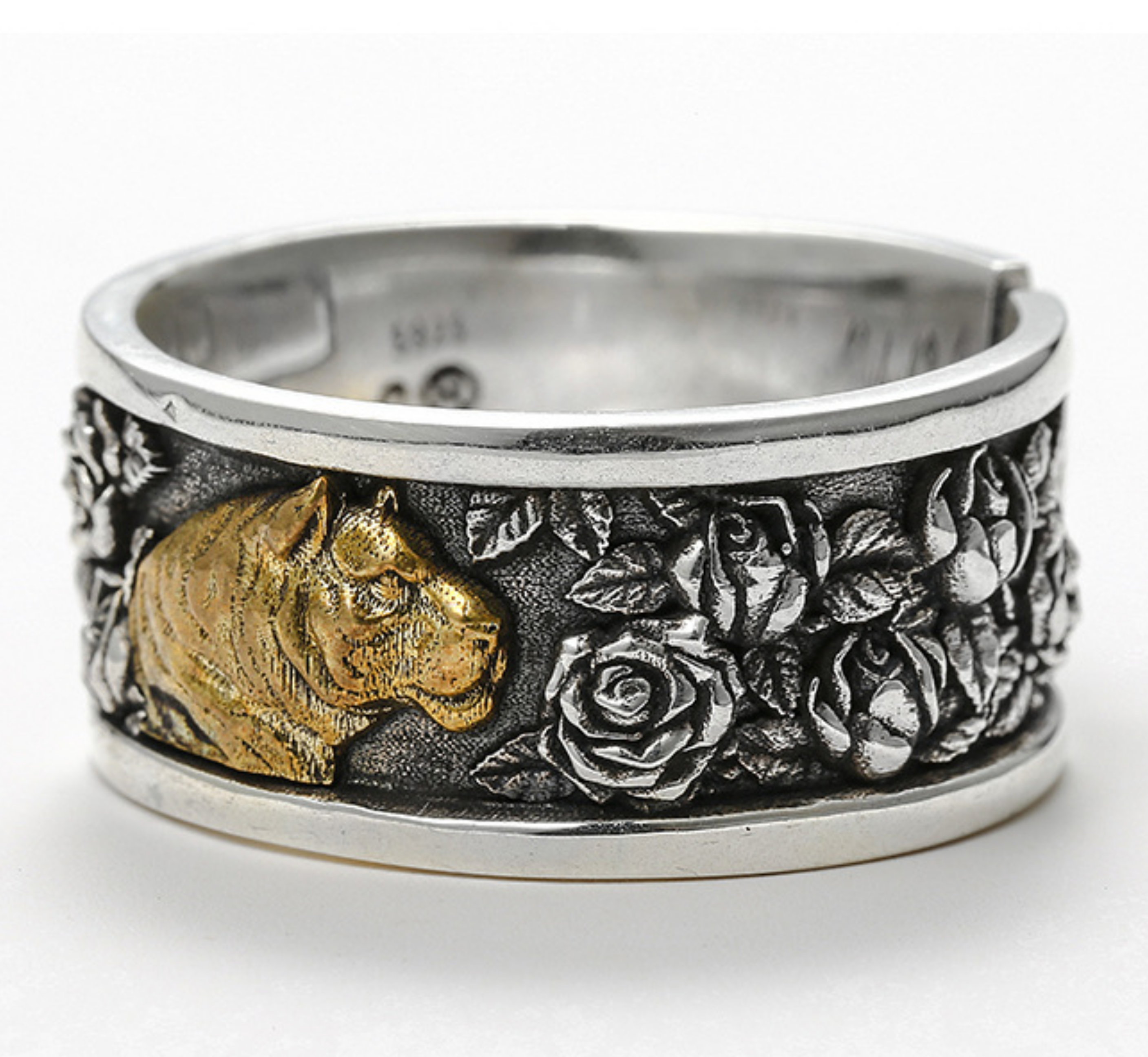 Vintage Unisex Punk Engraved Tiger Rosa Gothic Jewelry 925 Silver Ring 80s 90s Y2K Streetwear Party Dance Occasion Ootdstyle Amazing