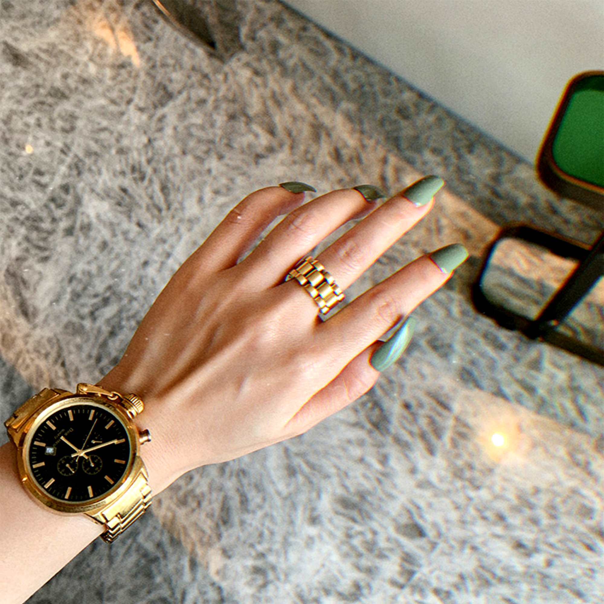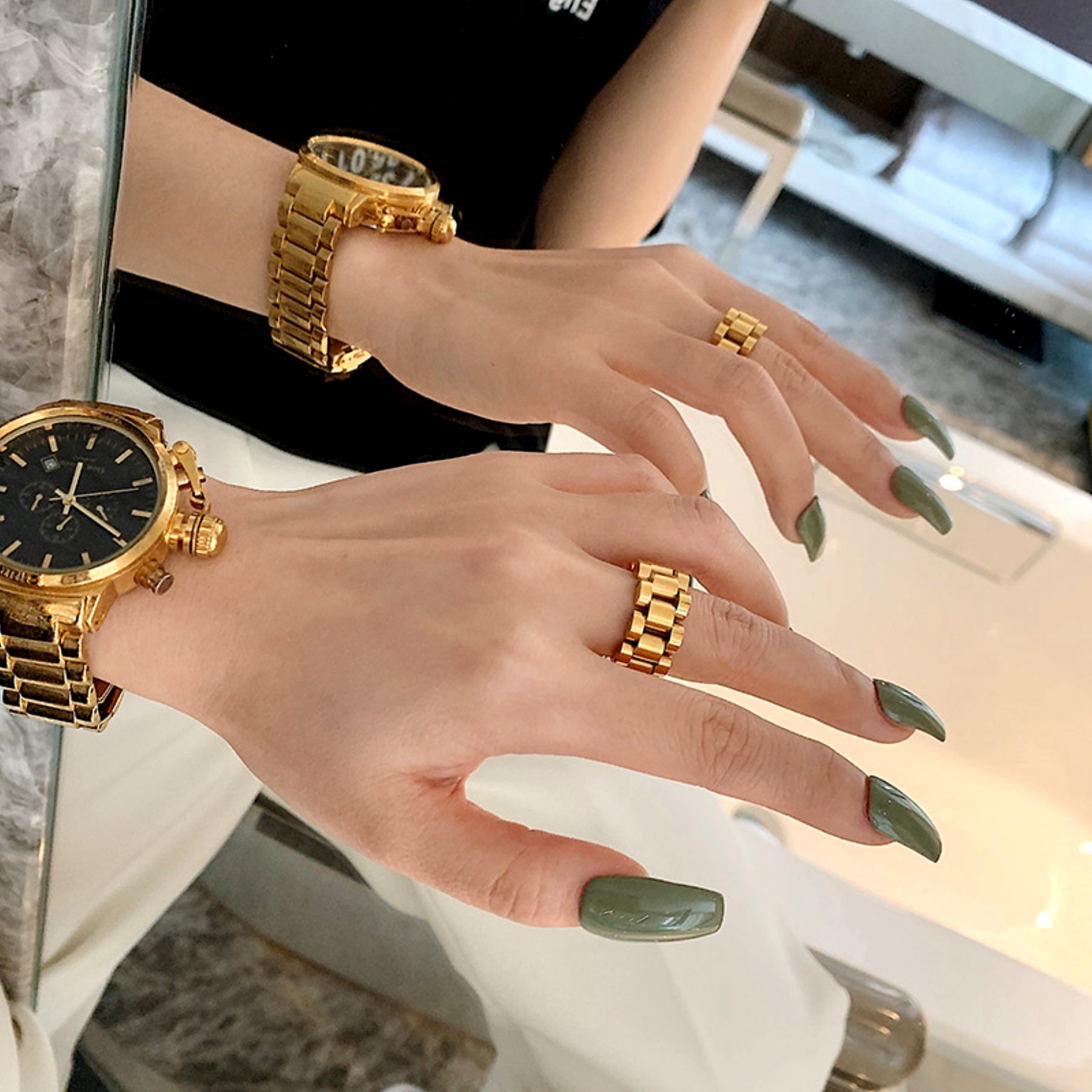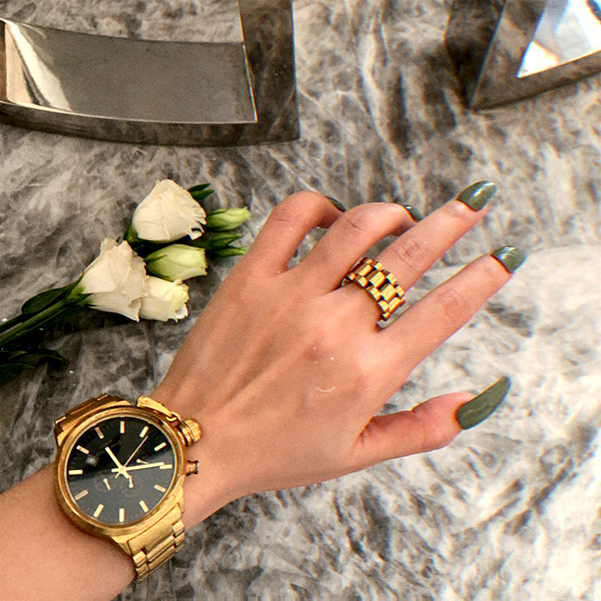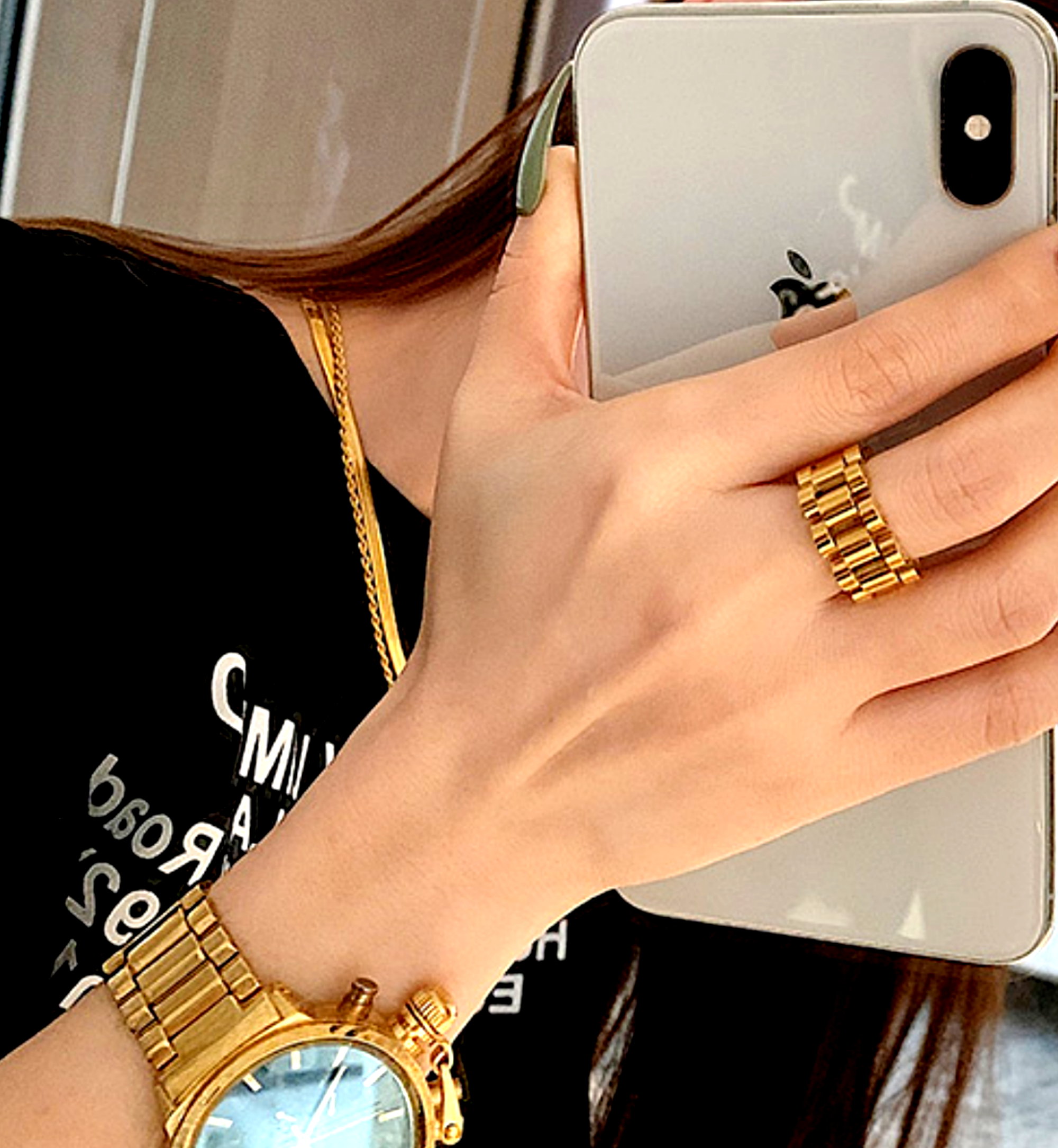 Vintage Highly Polished Wristband Style Stainless Steel Gold Ring 80s 90s Y2K Streetwear Party Dance Occasion Ootdstyle Amazing