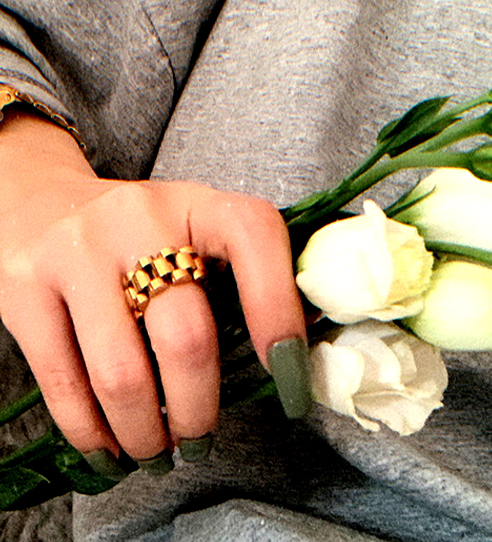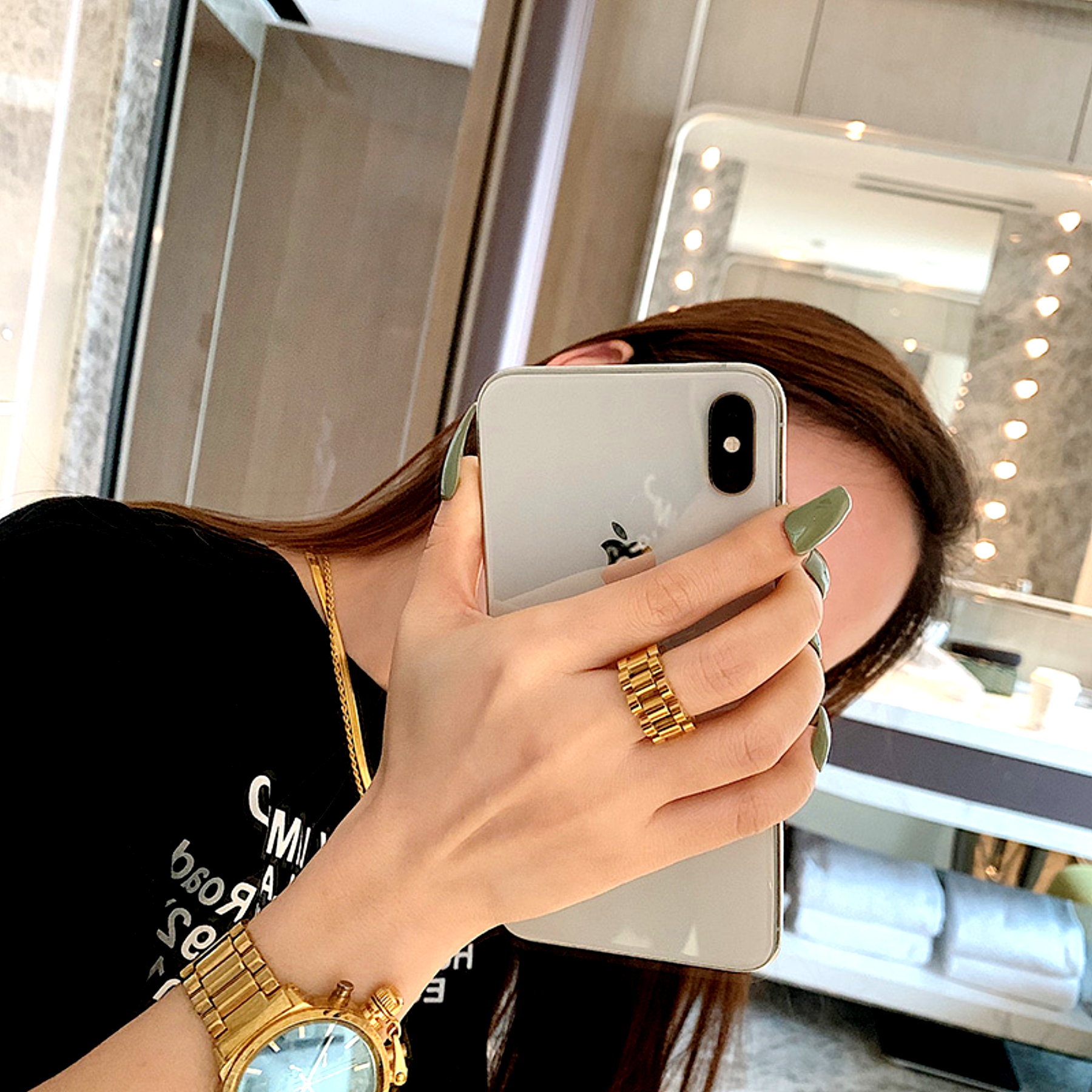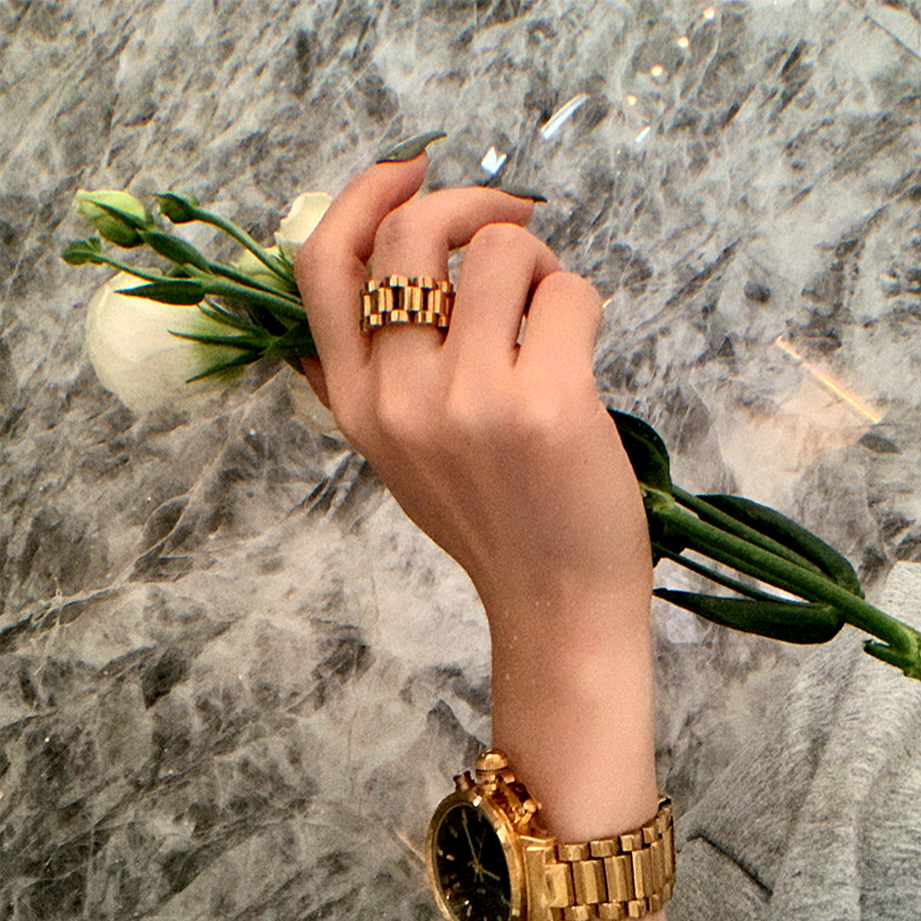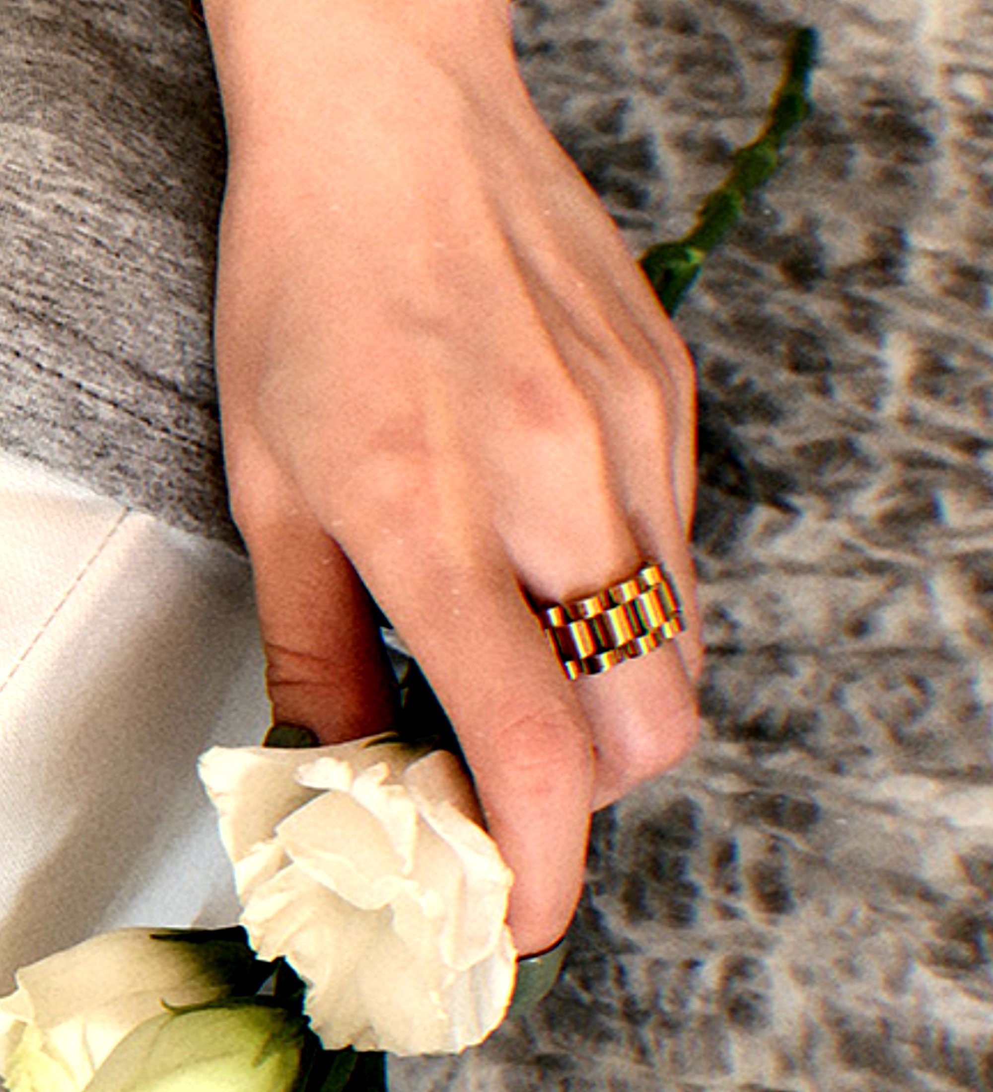 Vintage Highly Polished Wristband Style Stainless Steel Gold Ring 80s 90s Y2K Streetwear Party Dance Occasion Ootdstyle Amazing