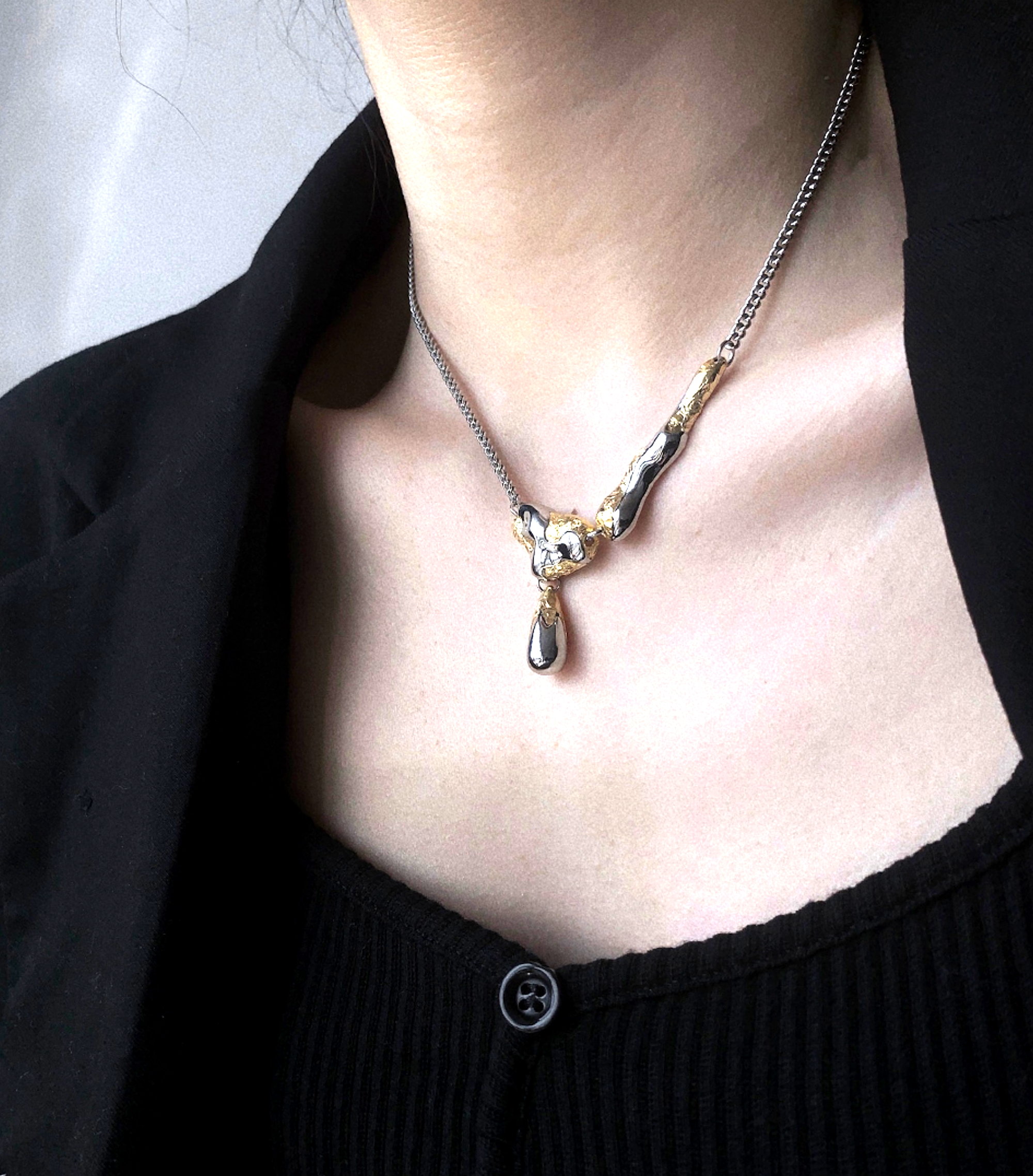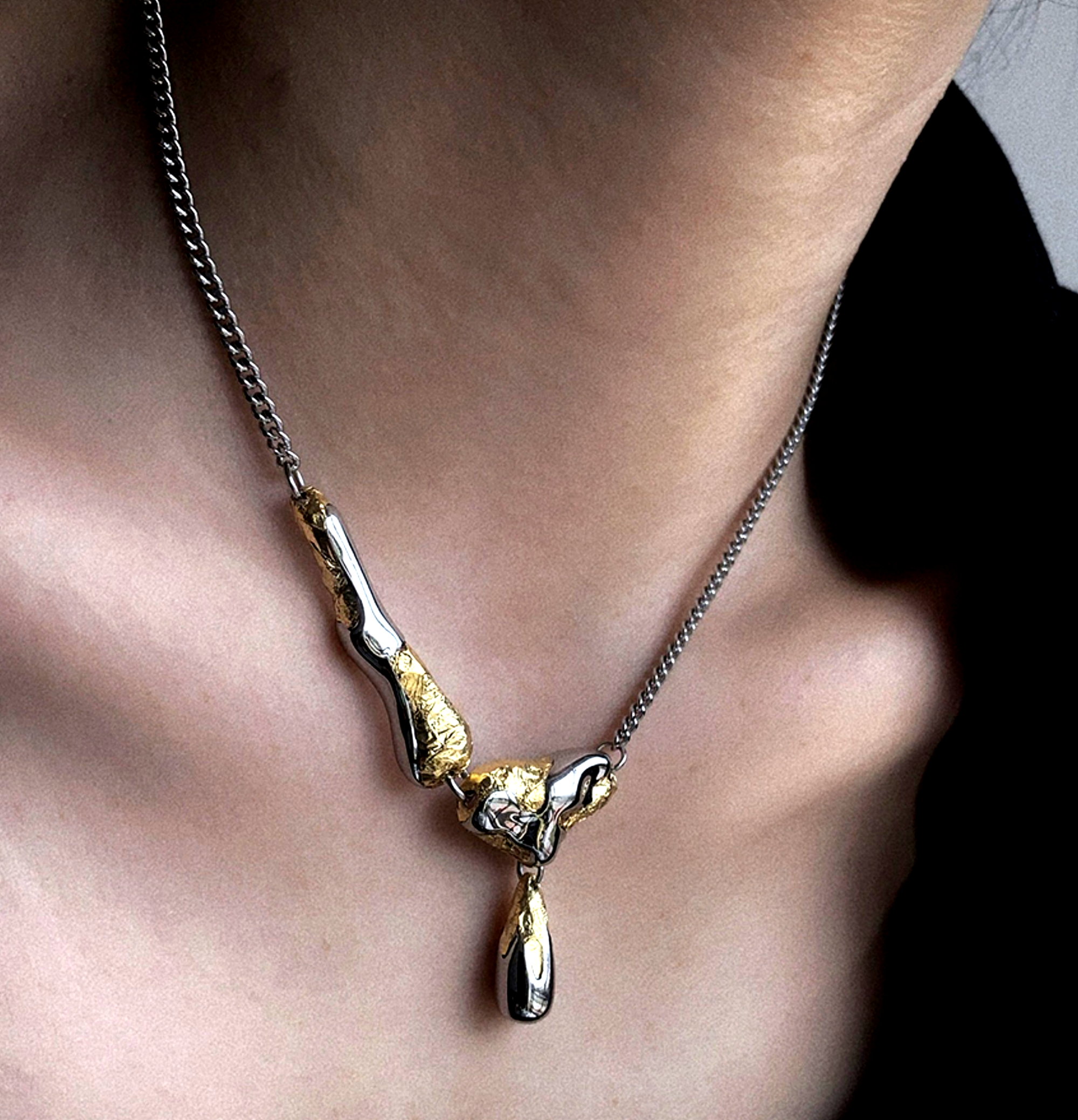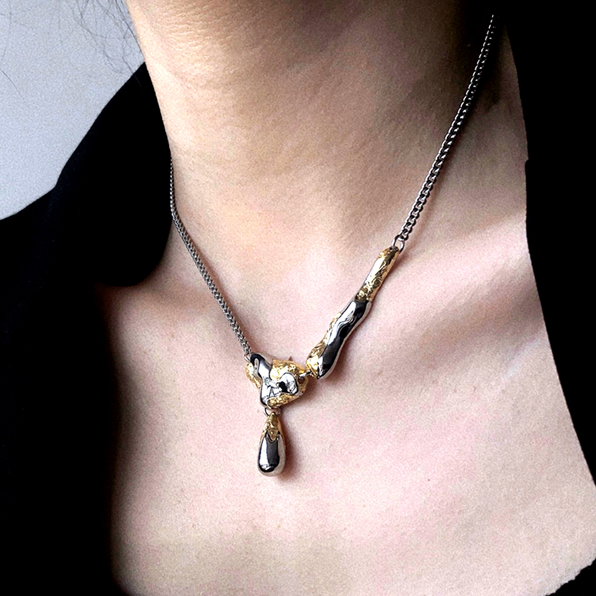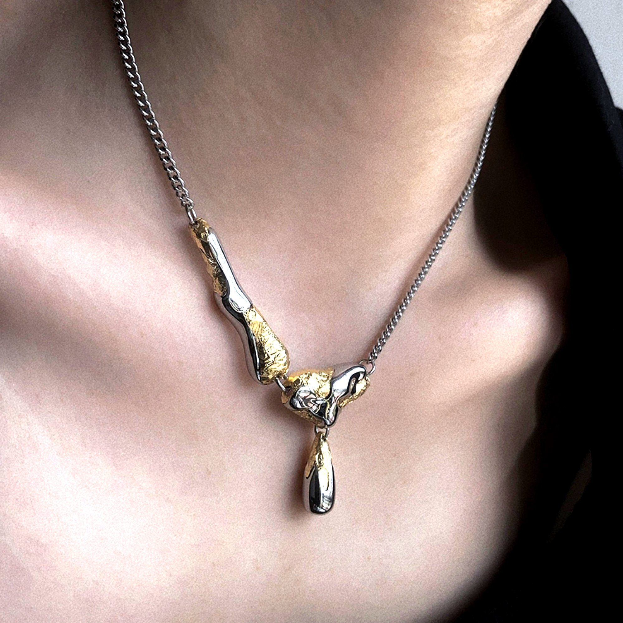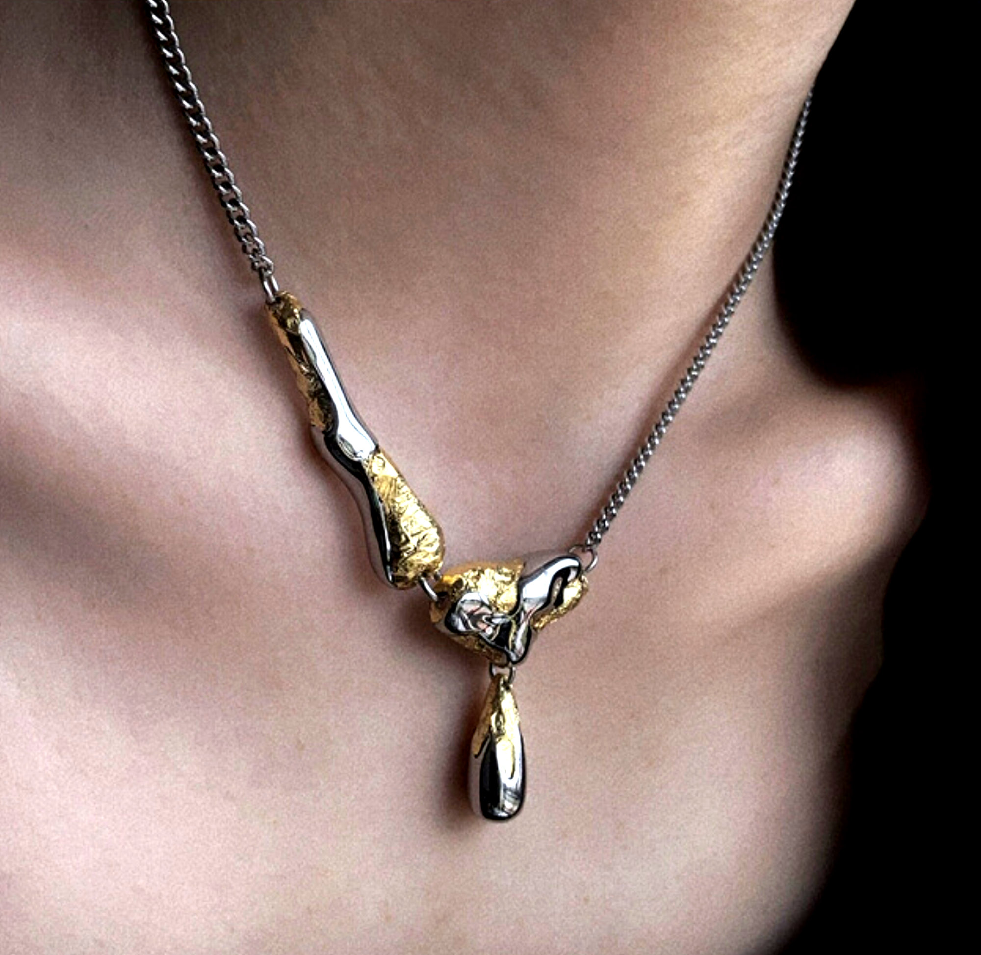 Stunning Gorgeous Titanium Steel Highly Polished Engraved Dainty Asymmetric Pendant Gold Steel Necklace Y2K Streetwear Party Dance Ootdstyle Amazing