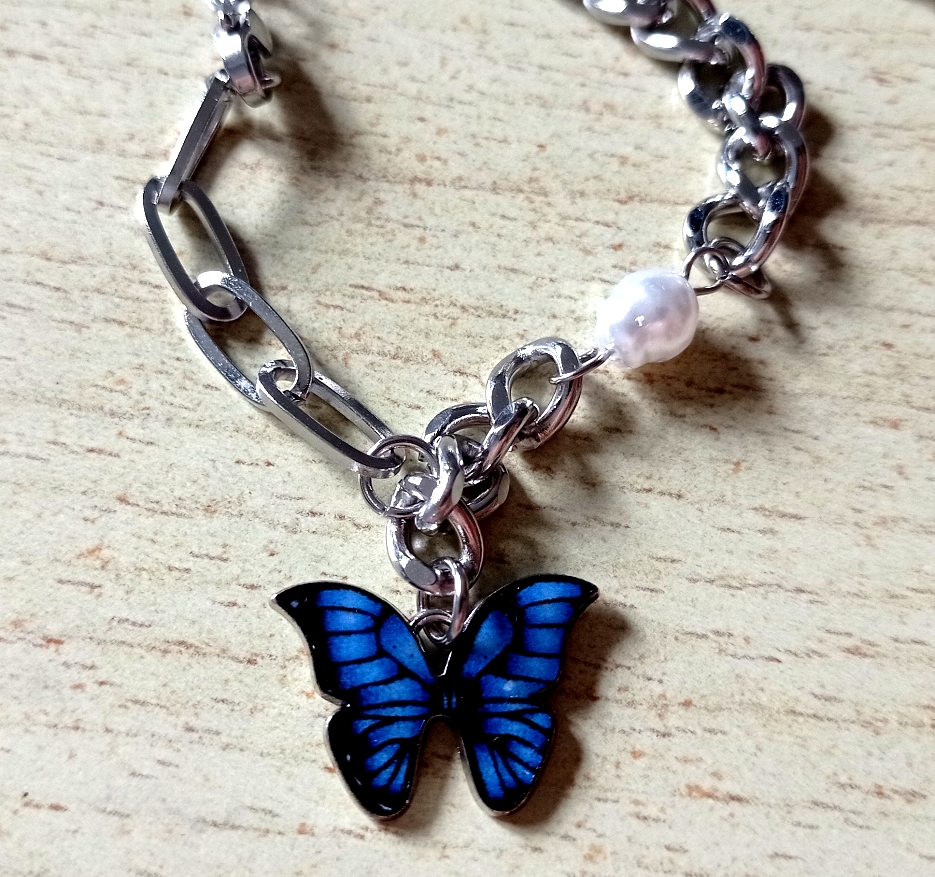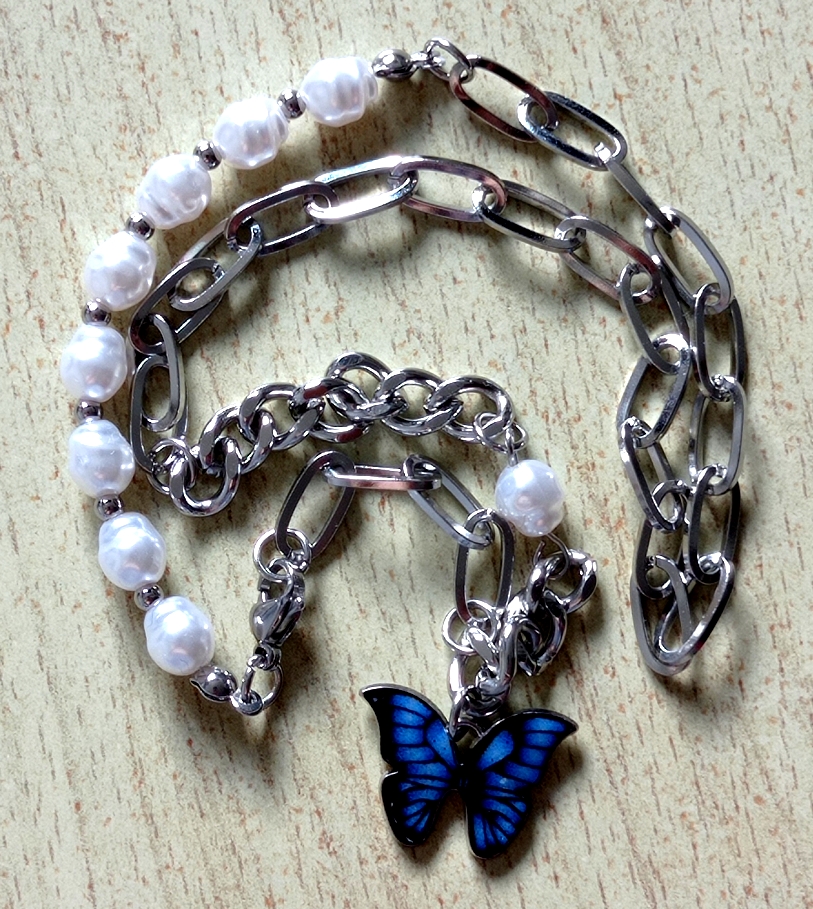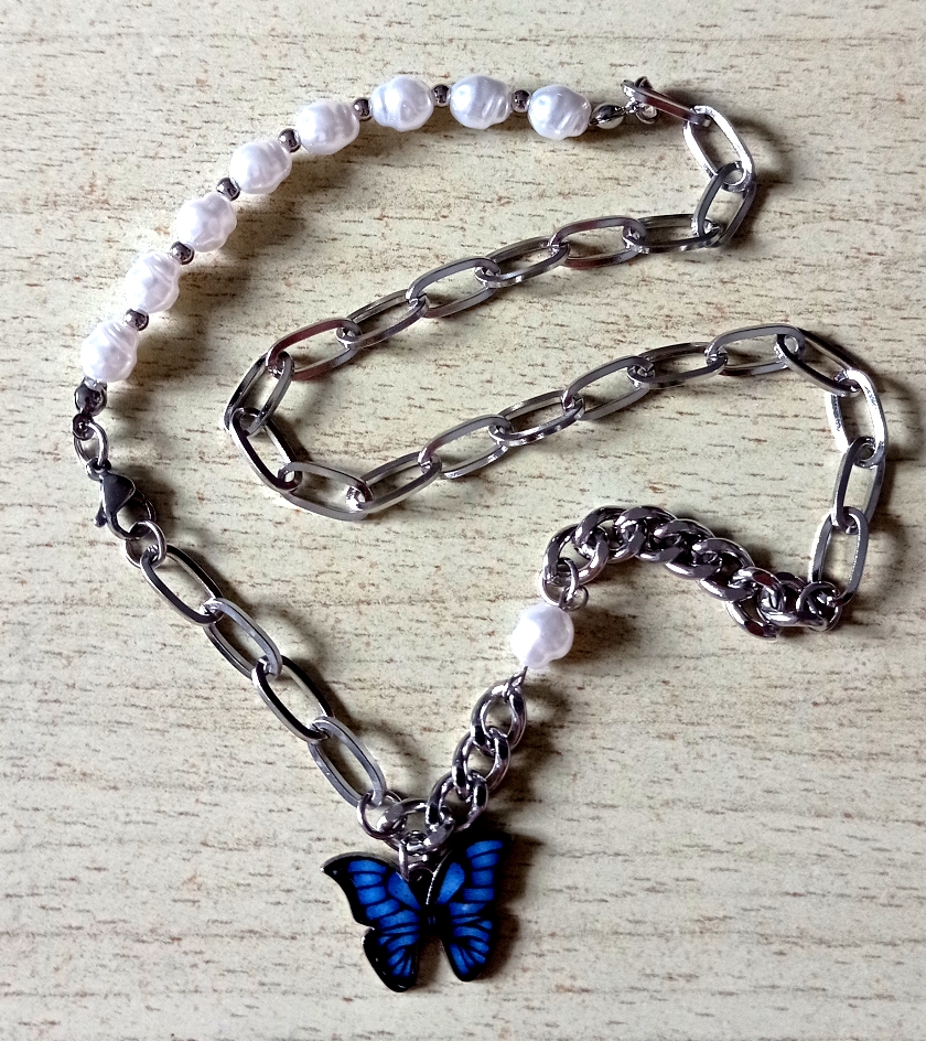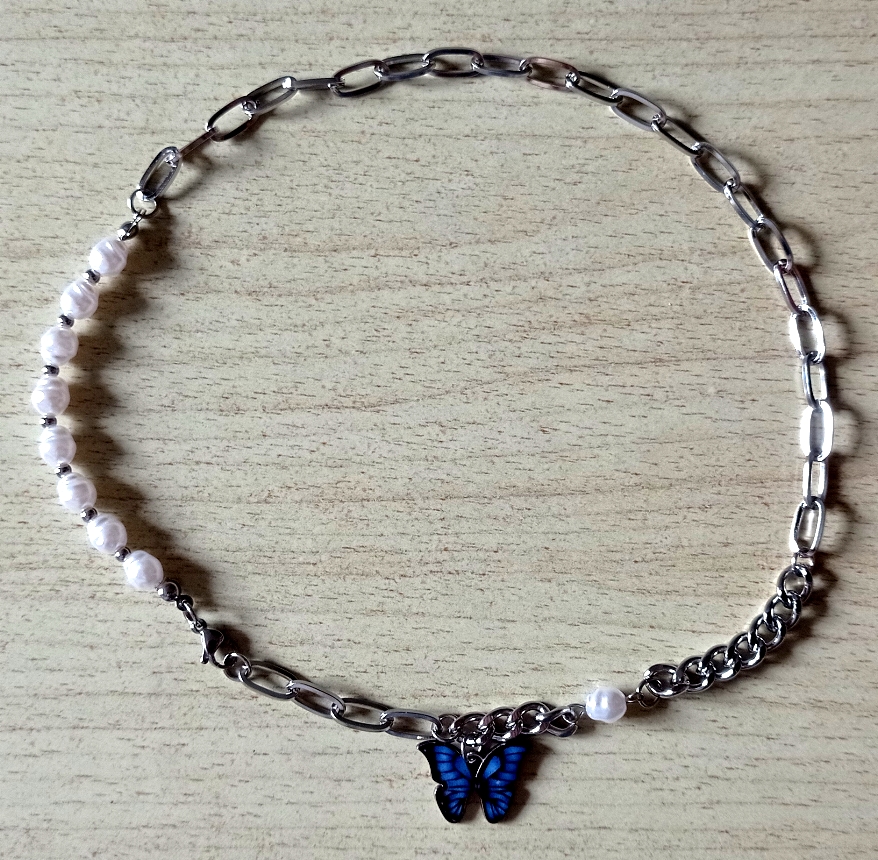 Stunning Punkrock Butterfly Patchwork Glitter Pearls Necklace Amazing Specifications (approx) Size:one size Chain:44cm Color:Silver