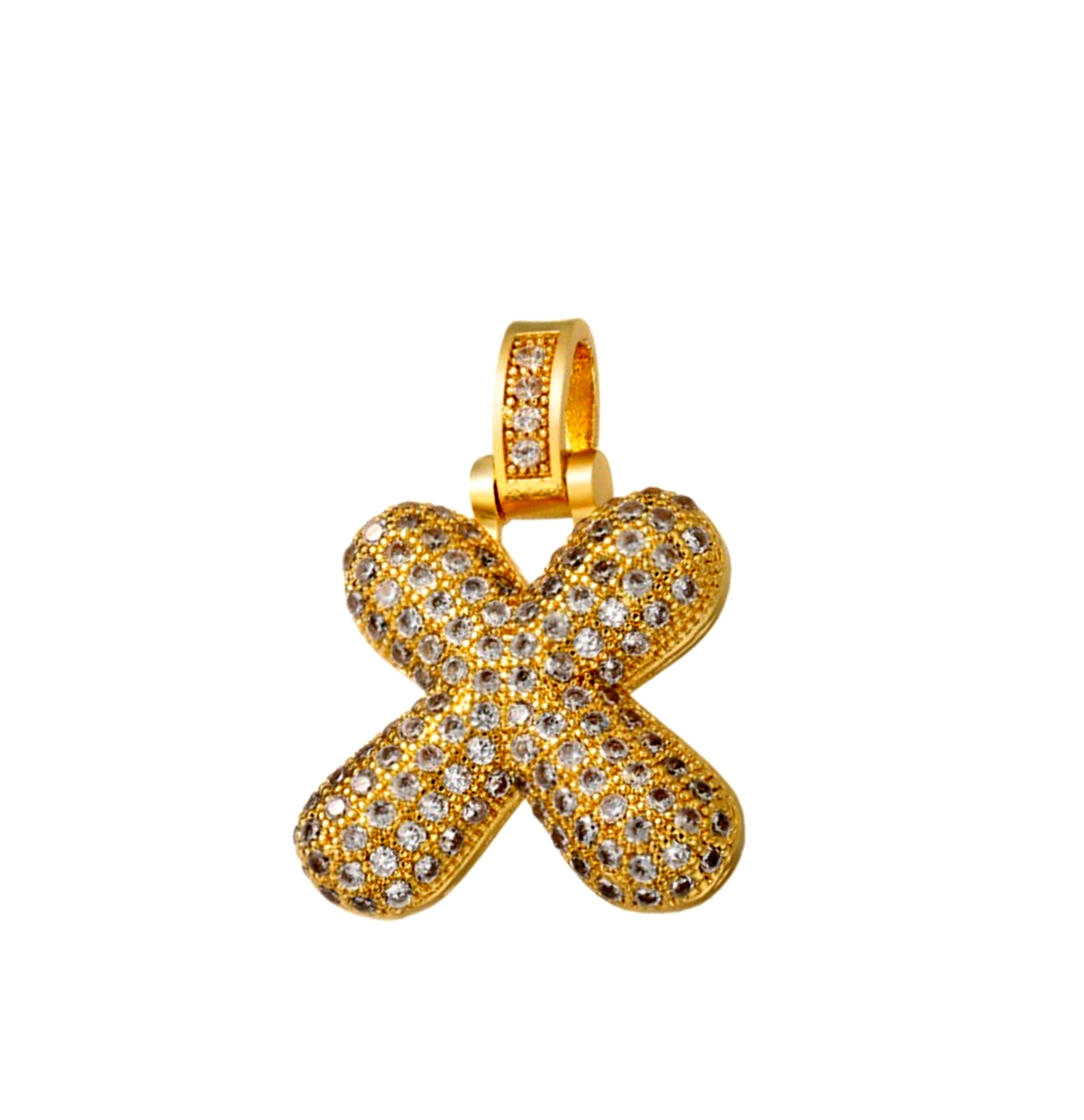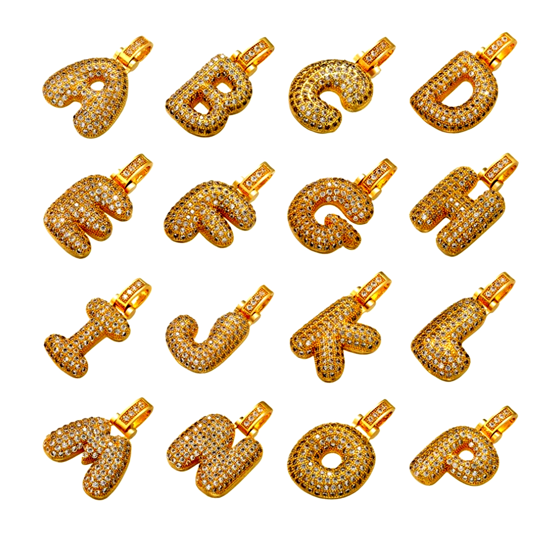 Stunning Shine Bubble Initials Full Diamonds Gold Necklace Unique Rare For Women and Men Amazing