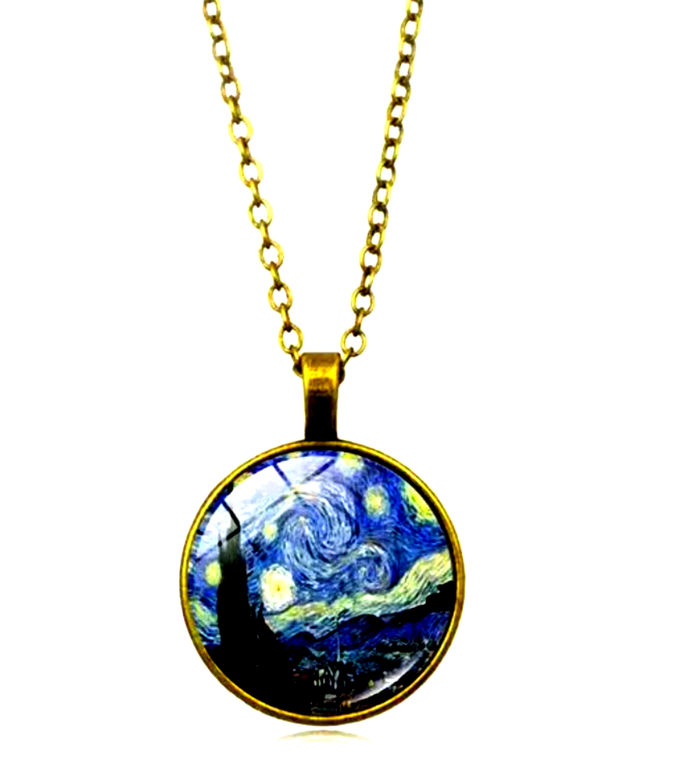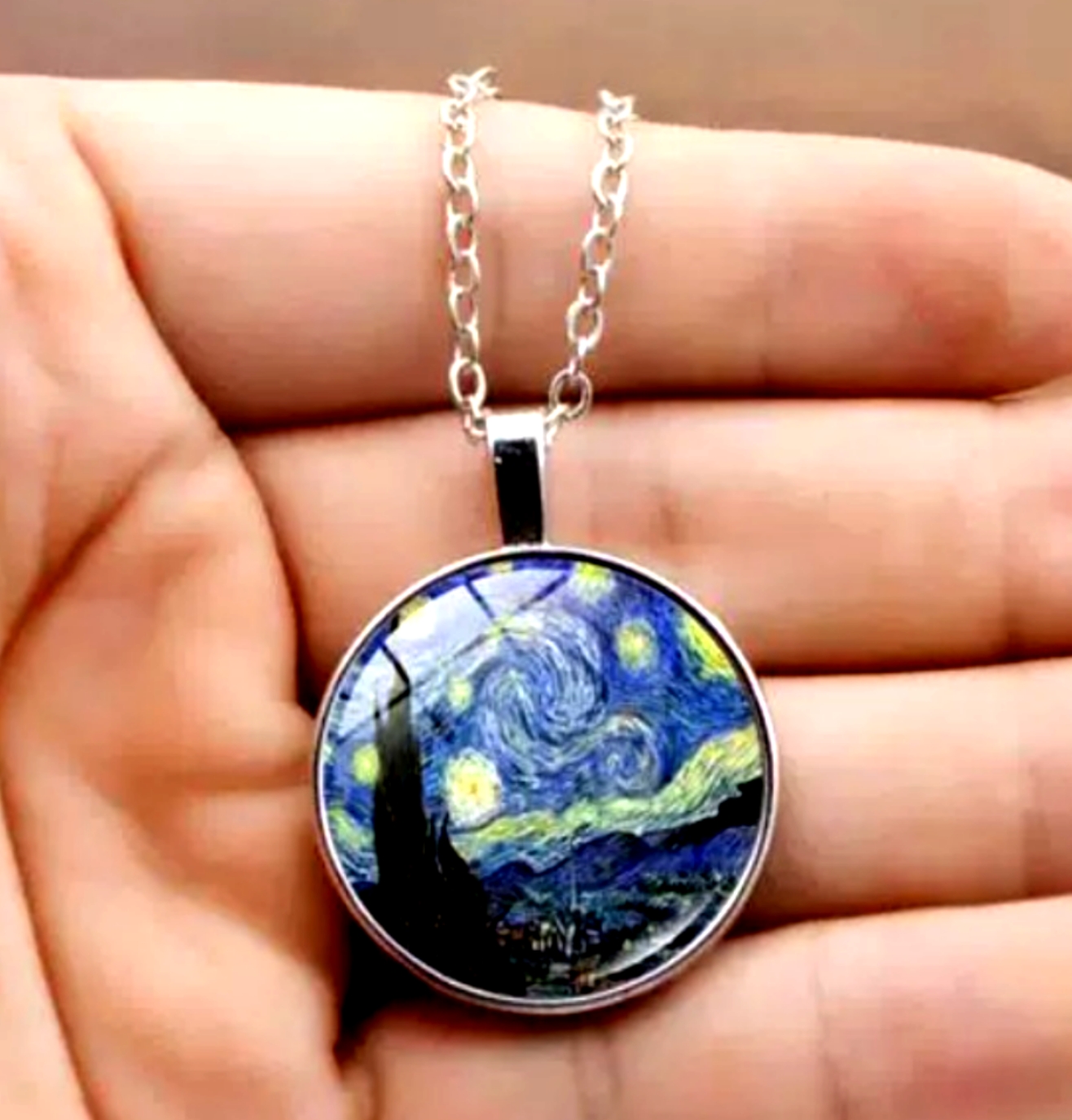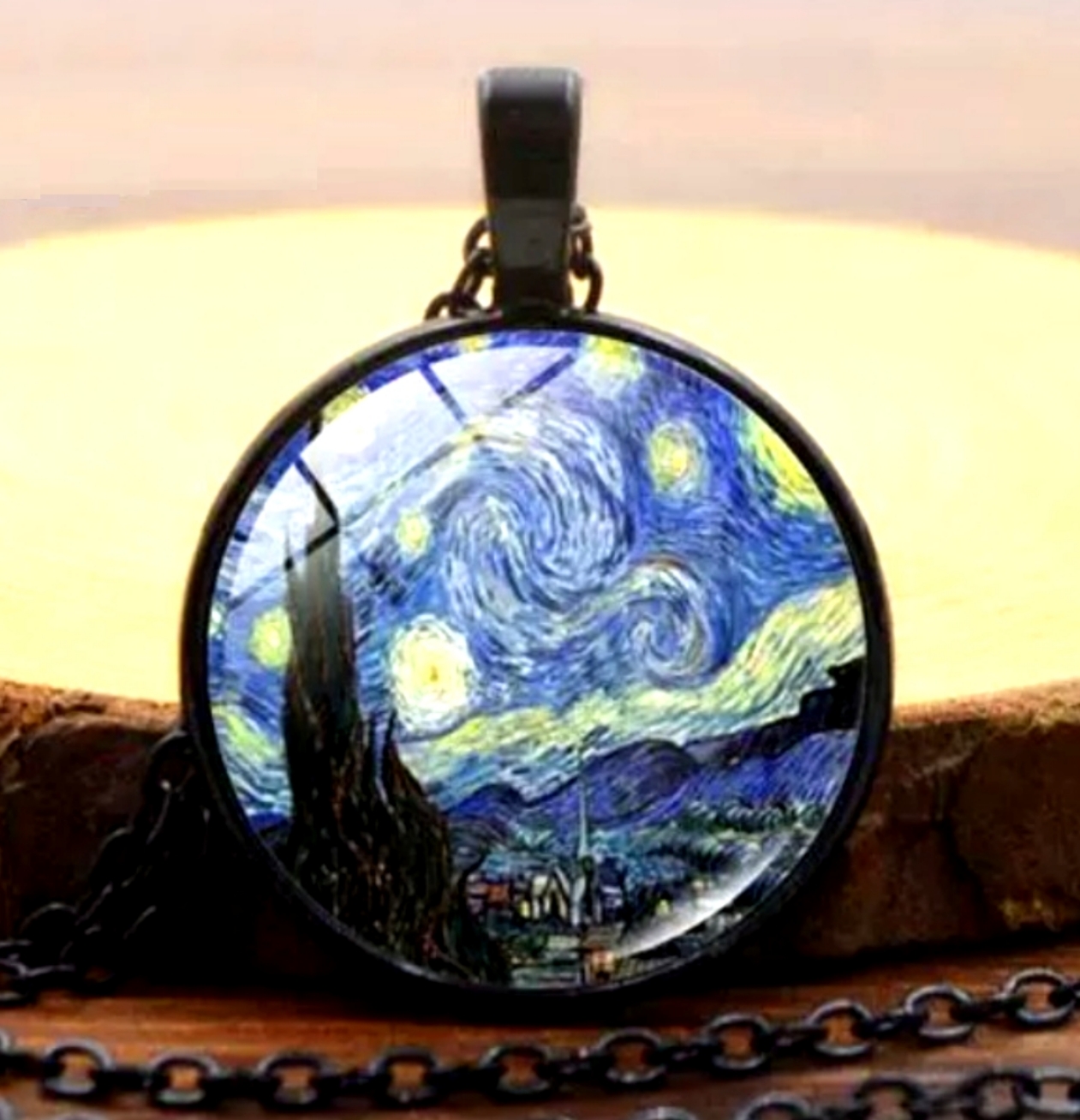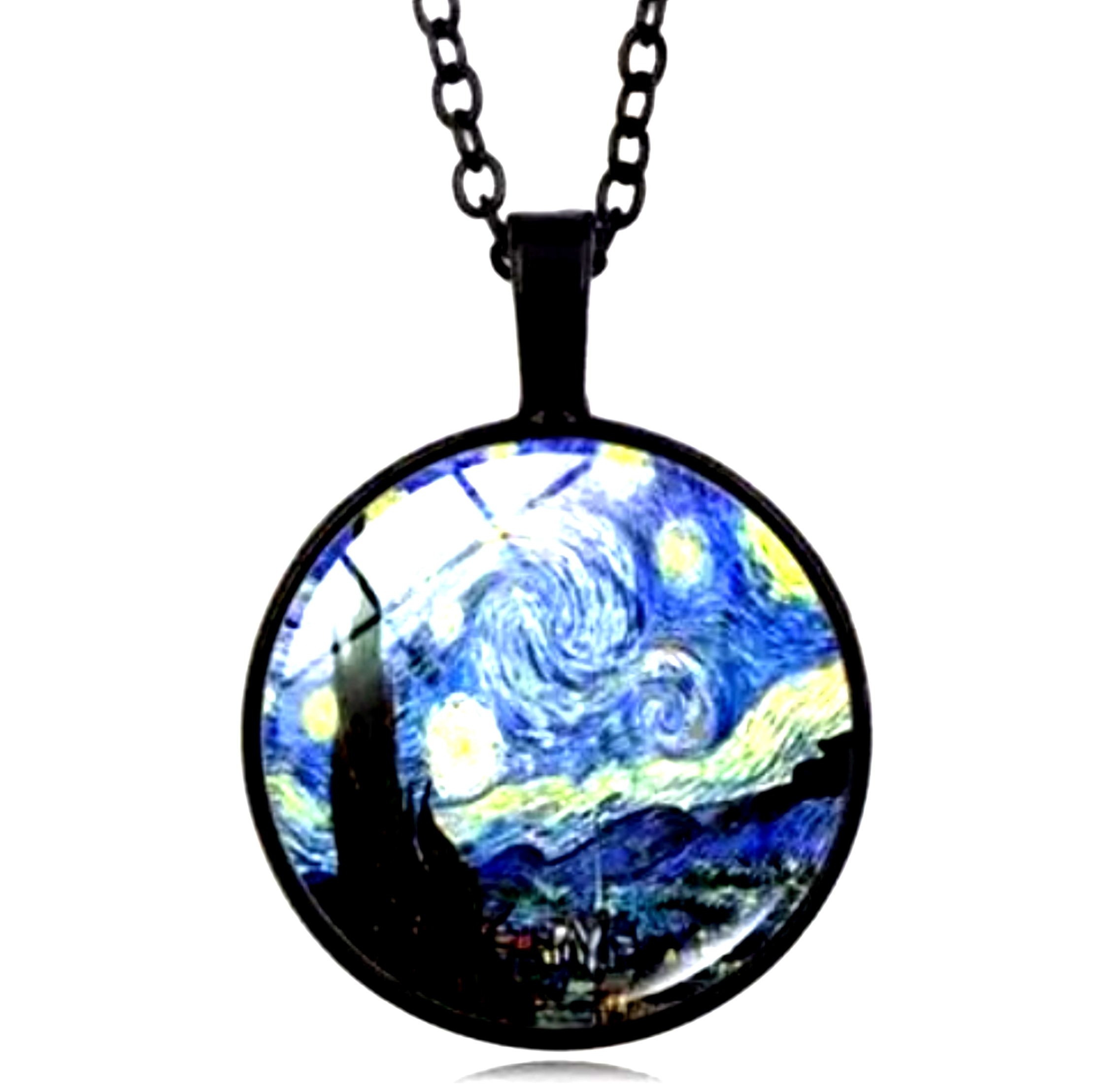 Stunning Punk Gothic Van Gogh Starry Night Handmade Art Print Black Necklace Artistic Jewelry Perfect Gift For Her or Him Amazing