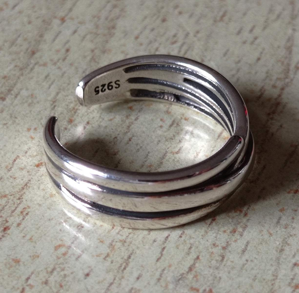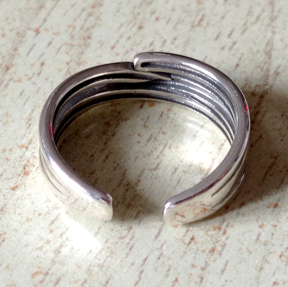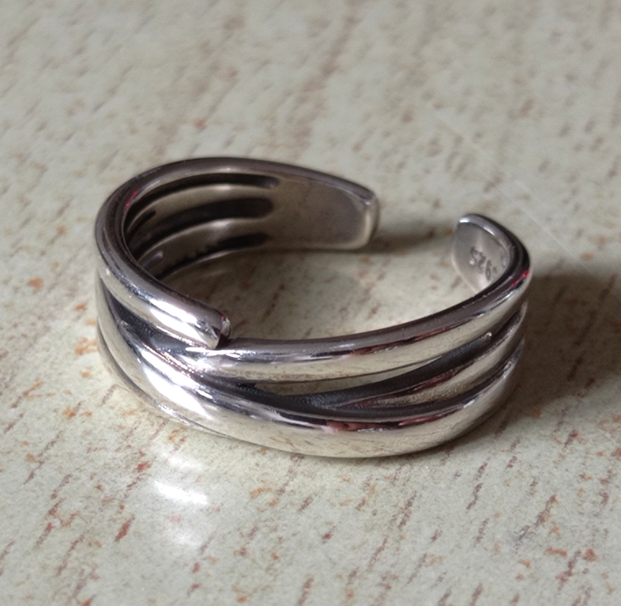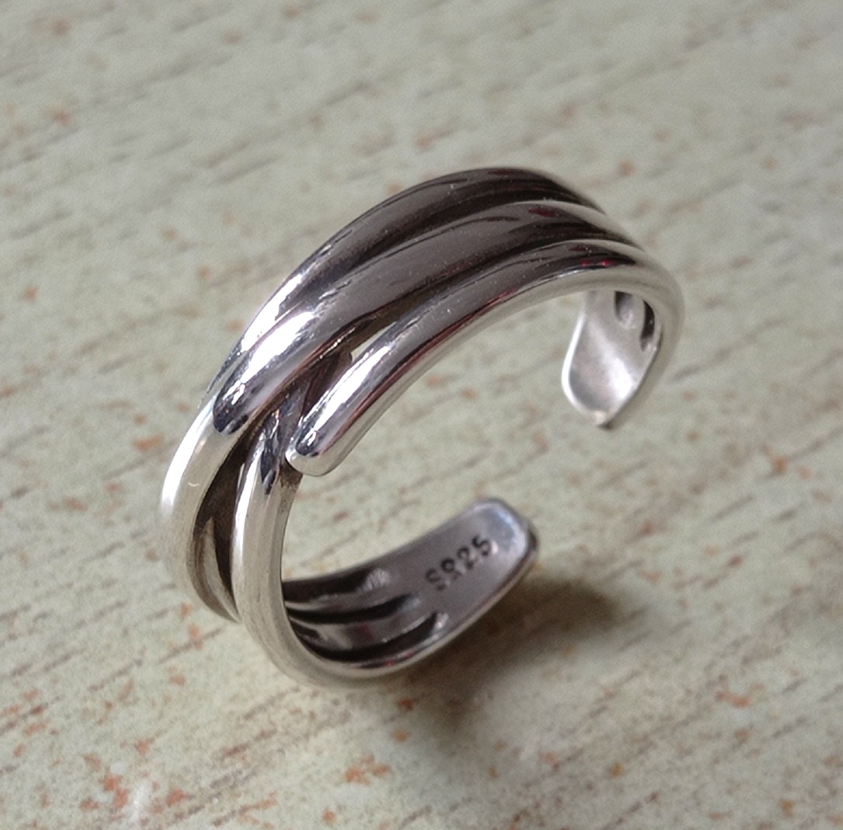 Stunning Punk Asymmetric Float Shine Cross Stripes Silver Ring Unique