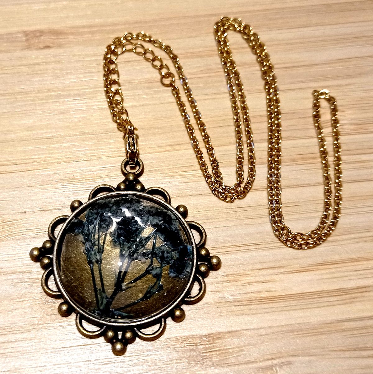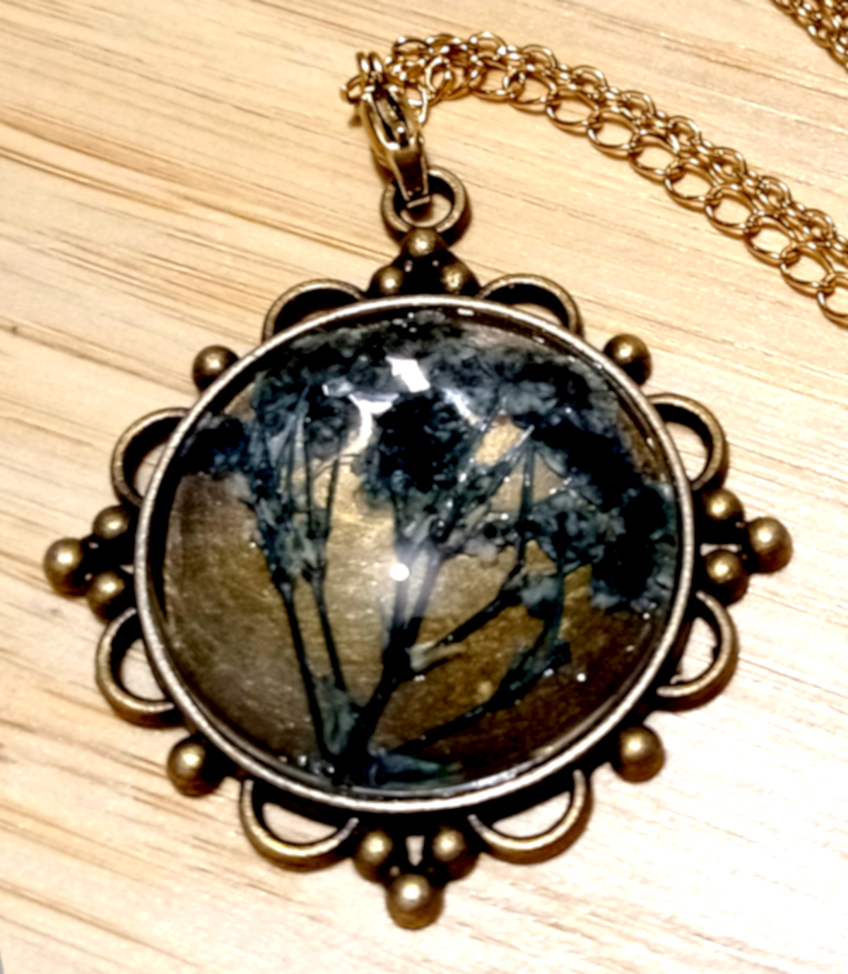 Pendant:30mm (Natural plant covered a clear glass domed cabochon pendant)