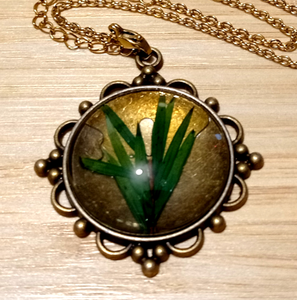 Pendant:30mm (Natural plant covered a clear glass domed cabochon pendant)